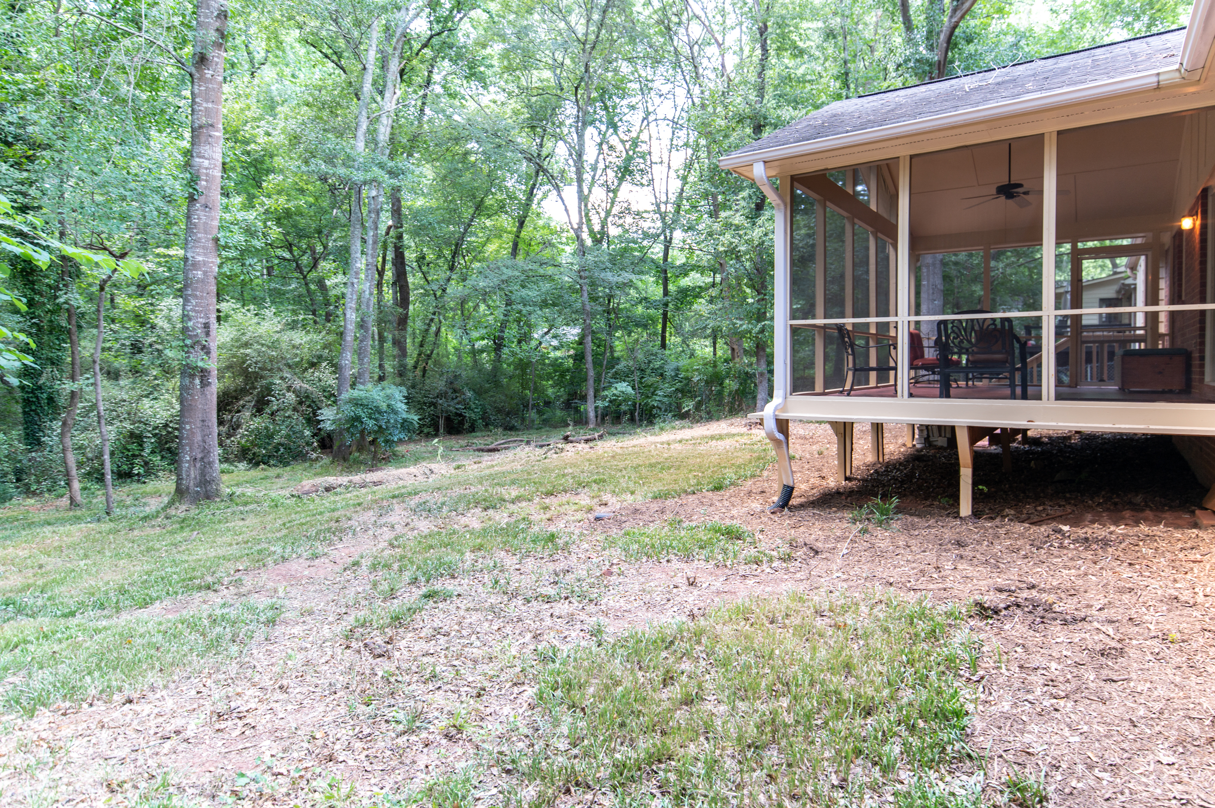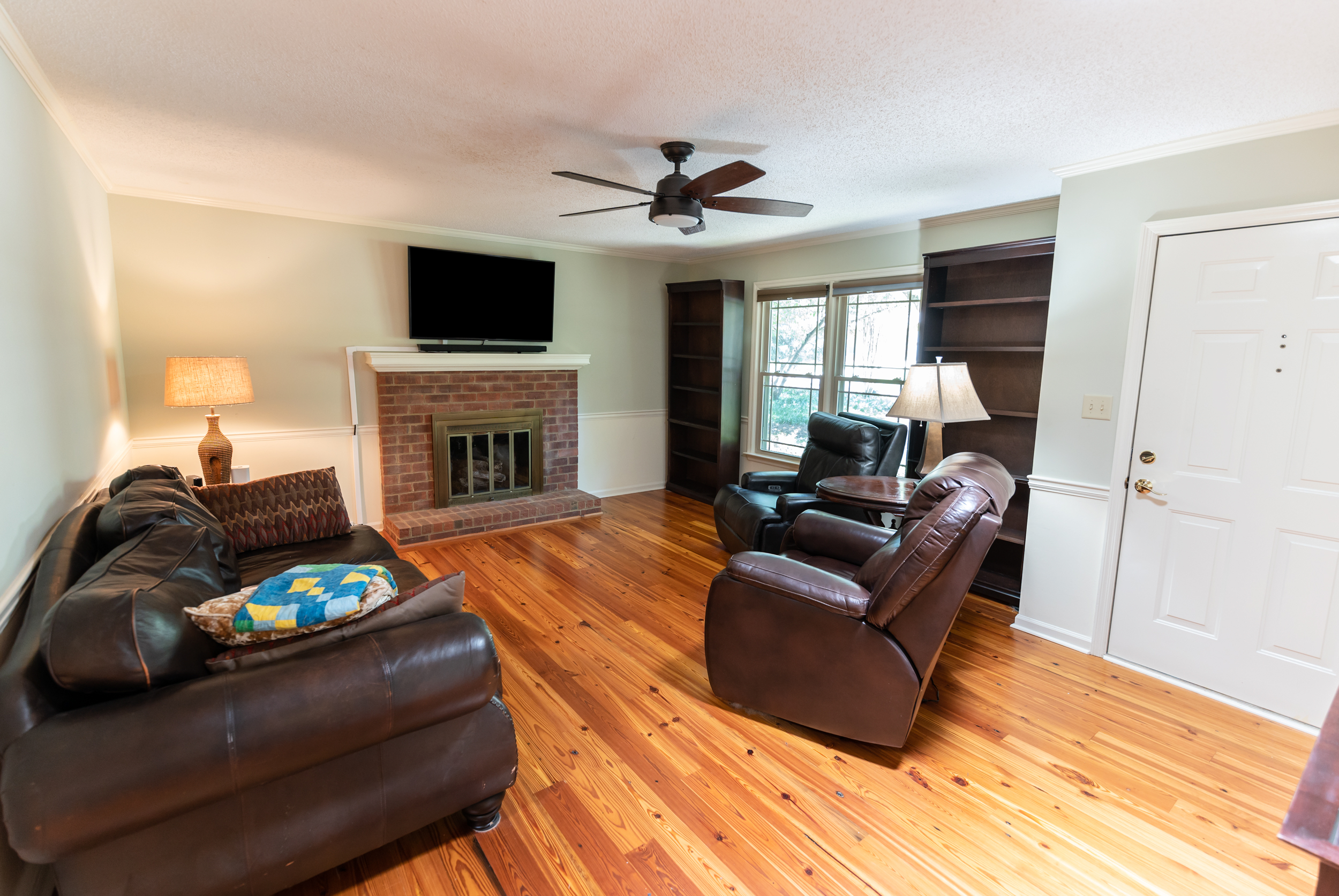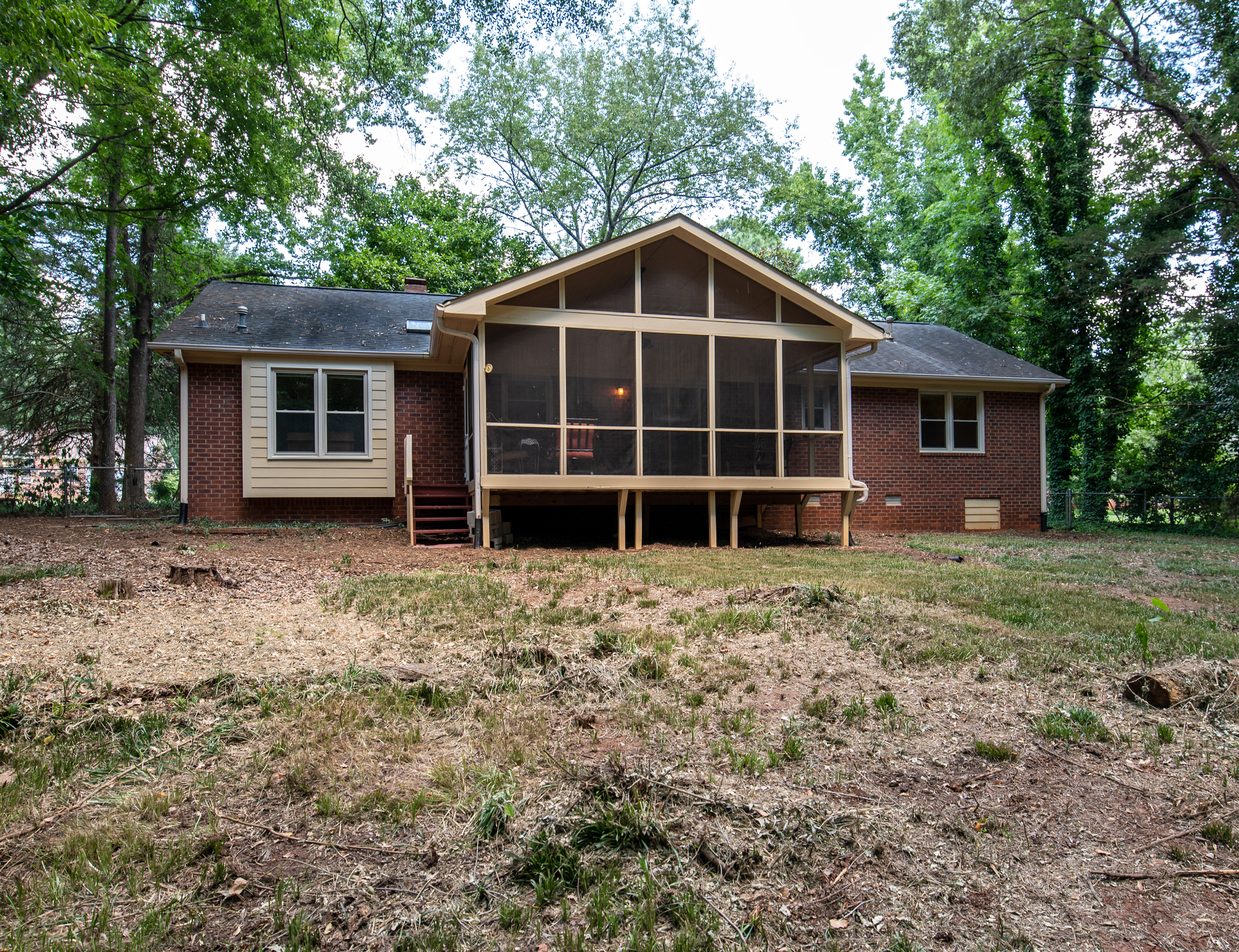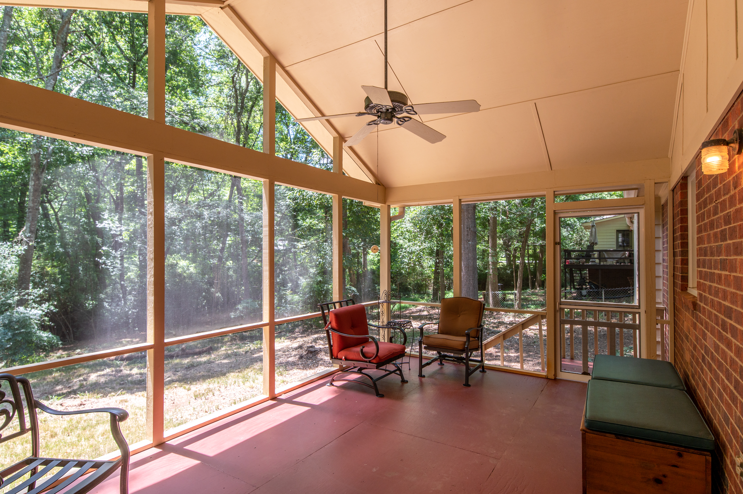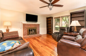 Renovated, conveniently located and low maintenance brick home is a 3 Bed/2 Bath with recently installed heart pine floors throughout and tile in the renovated bathrooms. Kitchen completely remodeled/renovated with newer appliances and a very new high-end Samsung stainless fridge. Gas Log Fireplace. Lovely back screened porch with vaulted ceiling overlooking a private wooded setting.