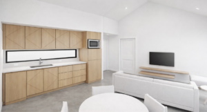 The kitchen will come fully equipped with a refrigerator, dishwasher, microwave, and plenty of cabinet space. Both bathrooms will include tiled stand-up showers and modern vanities for a sharp, updated finish.