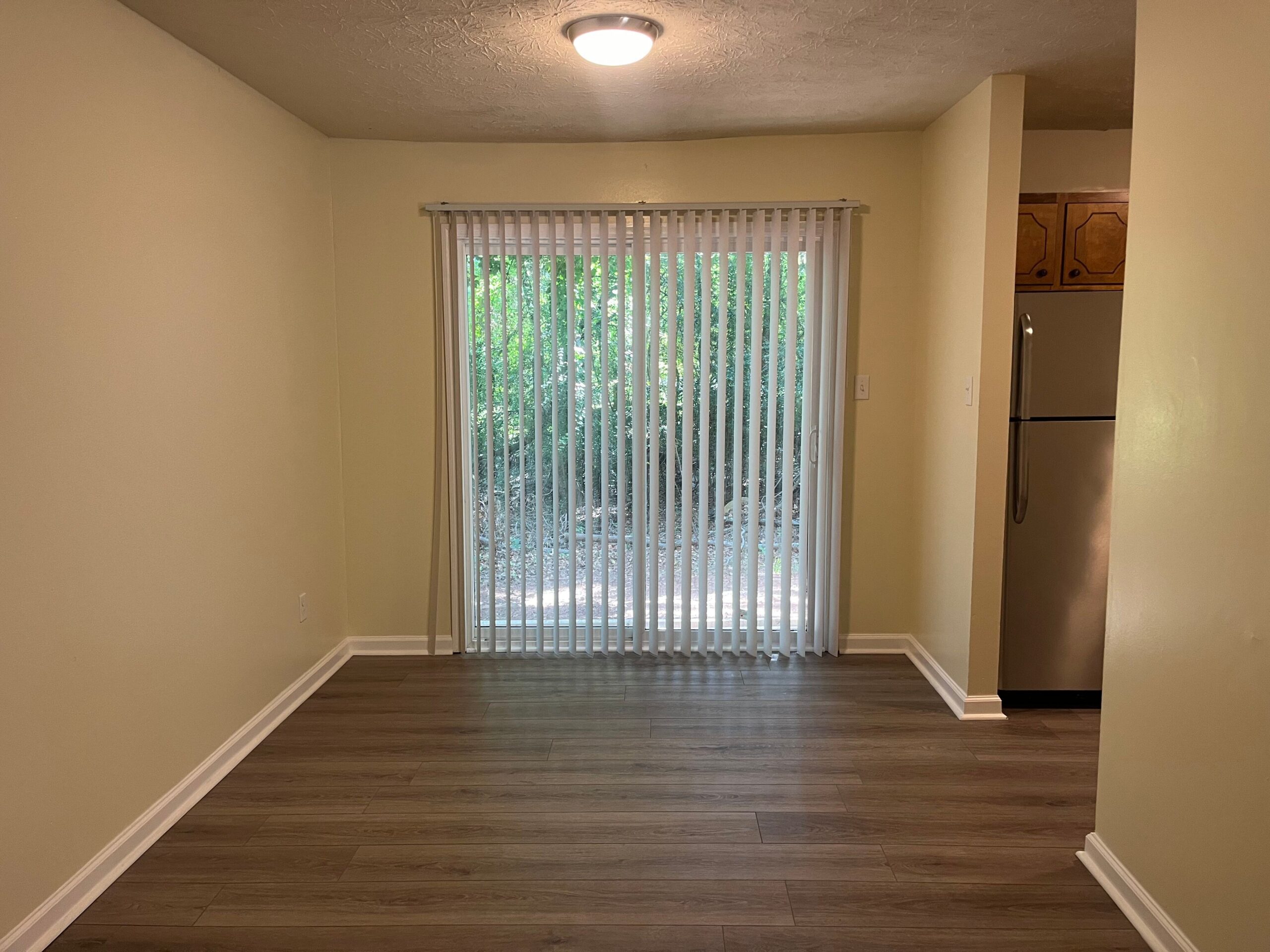 2 bedroom/1 bath duplex location off Tallassee Road in the Nicole Valley Neighborhood. Located close to Burney-Harris-Lyons Middle School. This unit features stainless steel appliances and a new sliding glass door to enjoy the back deck that leads to a flat-level backyard. The Primary Bedroom is in the back of the unit and has a standard closet where the front bedroom is smaller. The shared bathroom in the hallway.