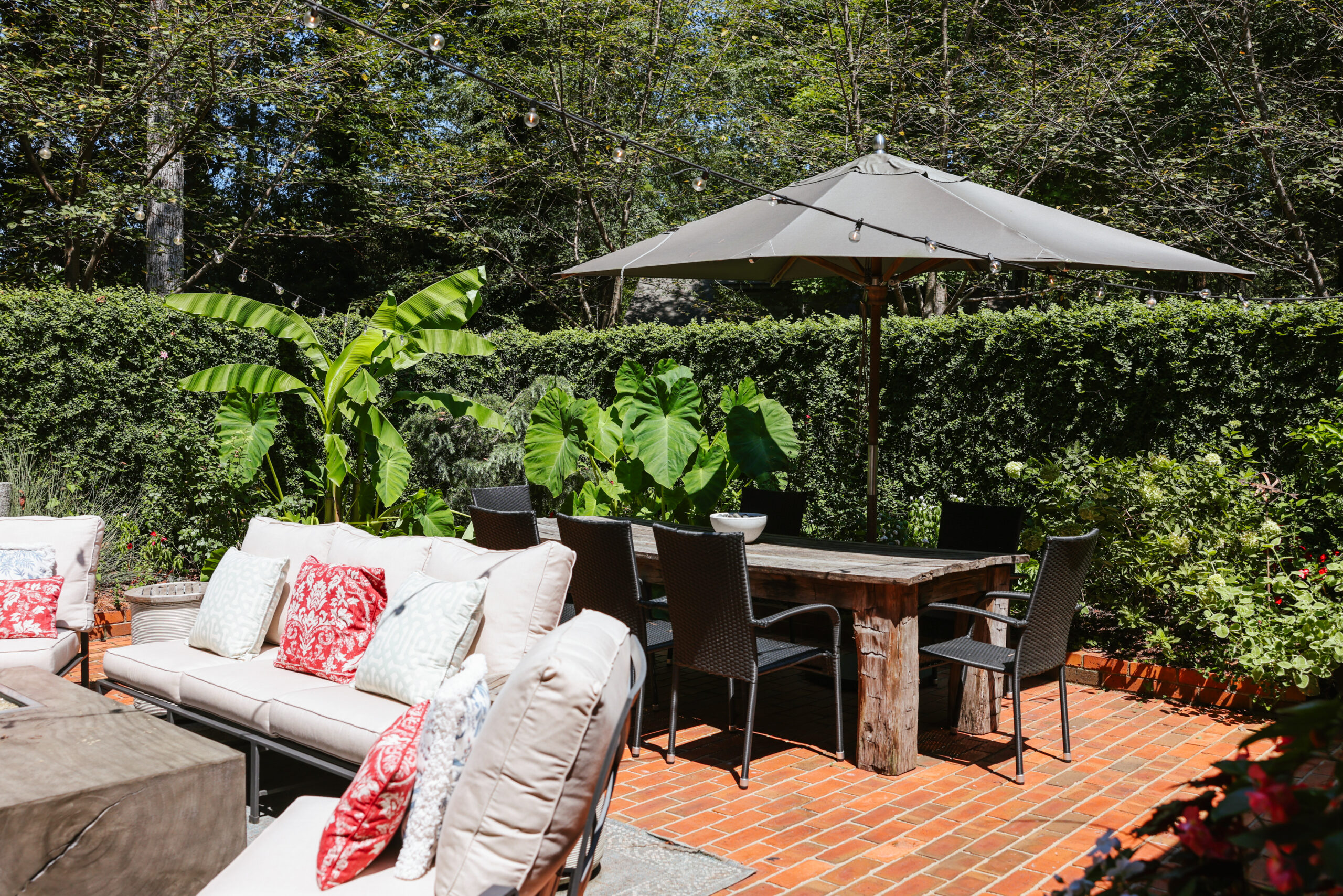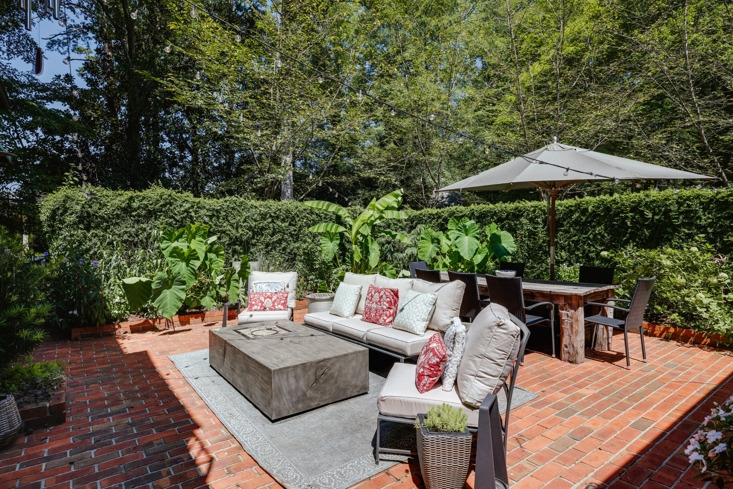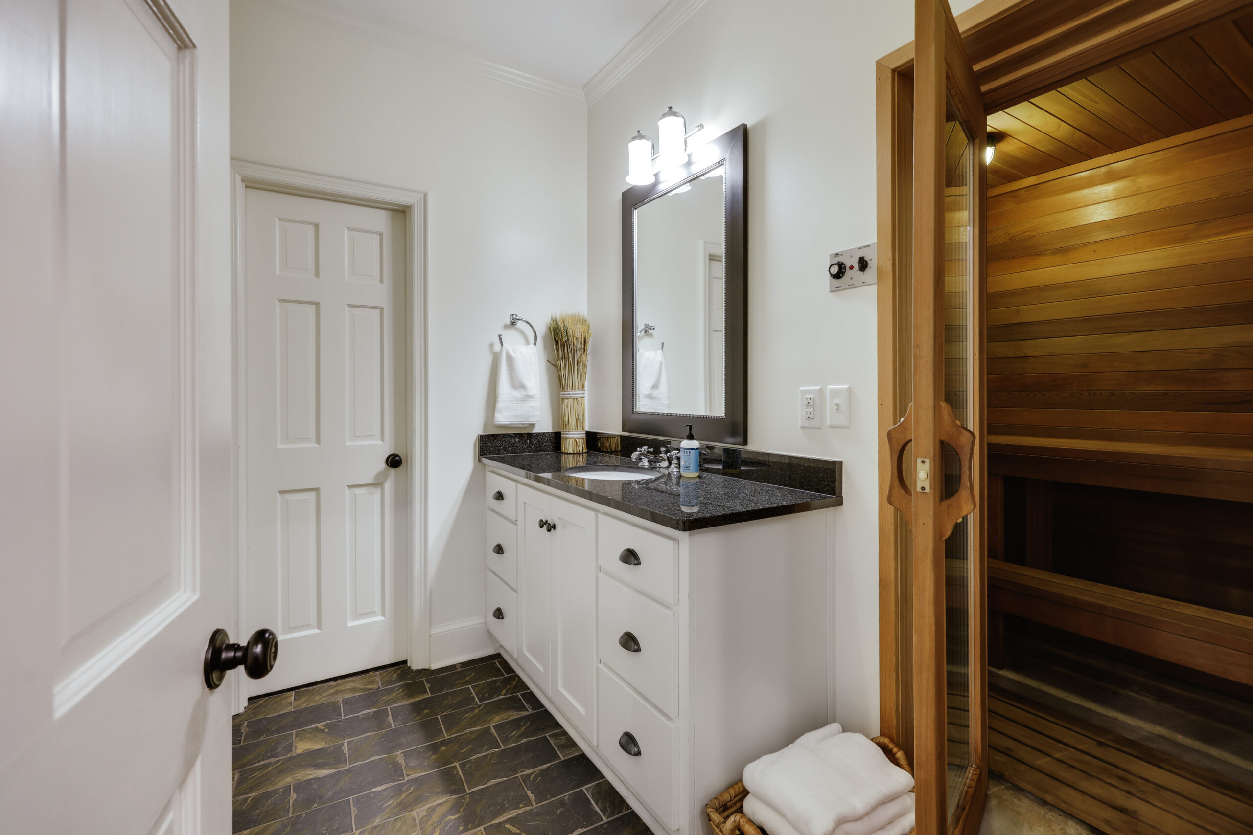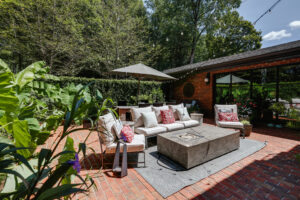 Gourmet kitchen with Wolf gas cooktop, All-Clad cookware, and well stocked cooking tools. Bedrooms feature super soft Garnet Hill bedding with feather beds and down-fill comforters. Exterior spaces feature a fire pit with built in seating, a Big Green Egg and a Gas Grill. The enclosed patio has a soothing fountain, string lights, 2 heaters (for chilly fall evenings) and a gas fire pit table. Large living and dining spaces accommodate a crowd. The master bath features a His and Hers side and a walk in sauna.