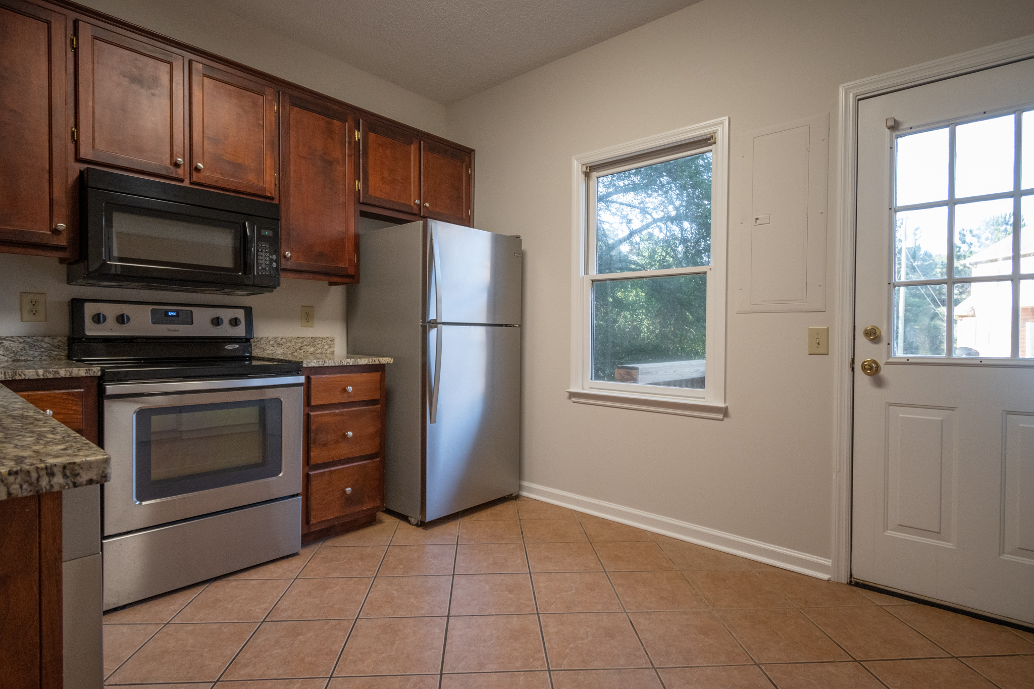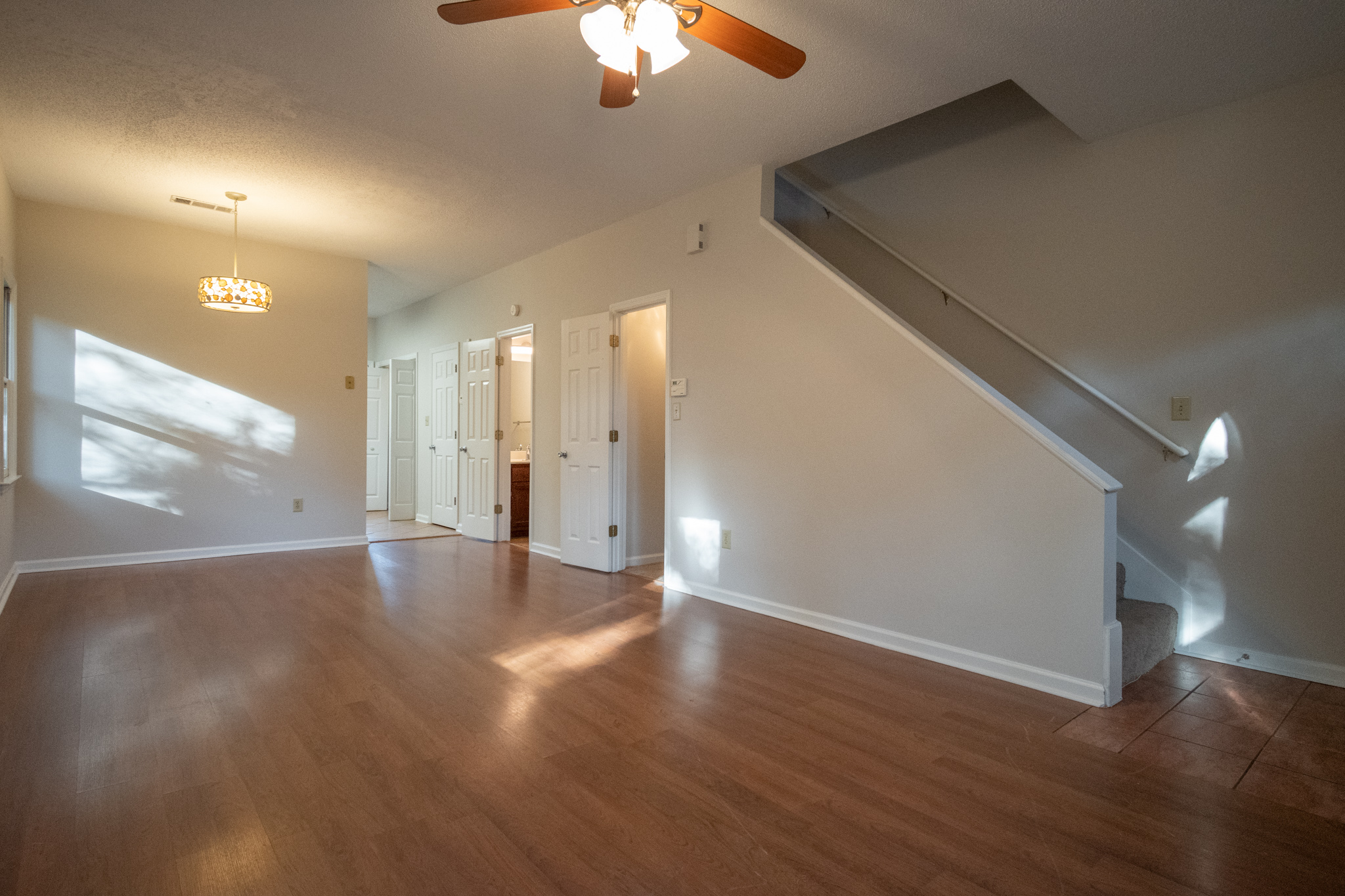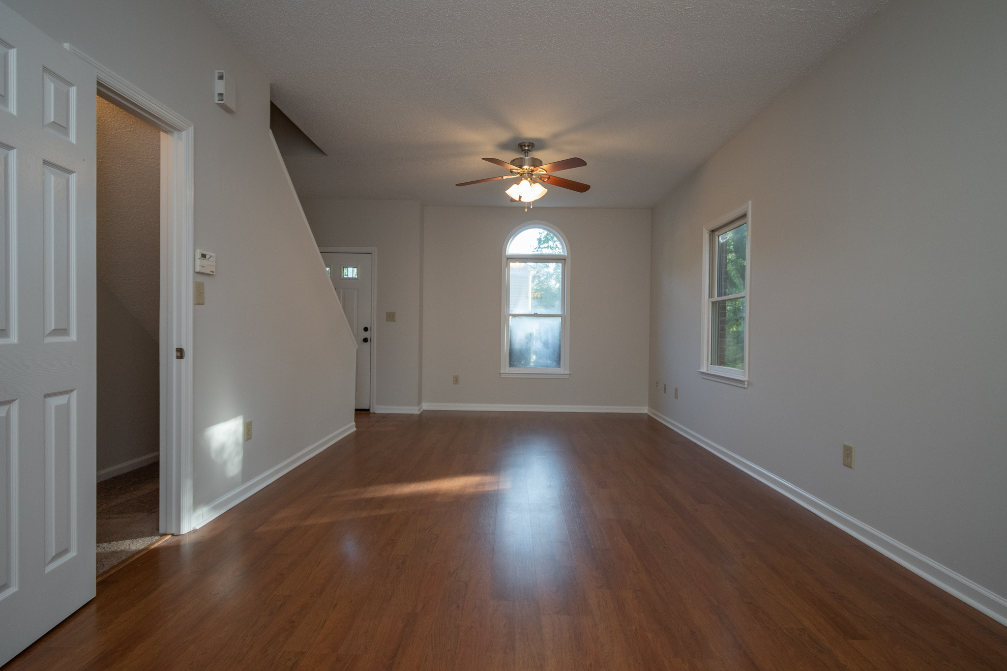 This beautiful FRESHLY PAINTED 2 bedroom/2.5 bath townhouse in River Station is located right off of Old Epps Bridge Rd. The neighborhood is secluded, very quiet, has lots of green space, and very conveniently located just off of Atlanta Highway. The townhouse has two assigned parking spaces, plus ample parking for guests. The carpet on the stairs is brand new and the large, living room/dining combination has laminate flooring and a tile entry area. There is a lovely half-bath with tile floors located just off of the living room. The kitchen has tile flooring, stainless steel appliances, granite countertops, garbage disposal, and lots of cabinet space. There is also a laundry closet located off of the kitchen with a washer/dryer connection and a newly installed hot water heater.
